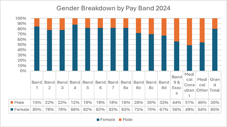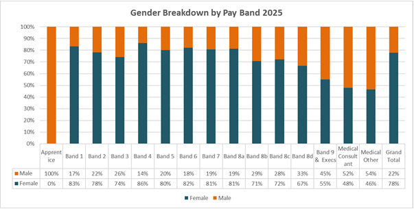 Please note these figures exclude bank workers. The remainder of the report includes data pertaining to substantive staff plus any bank workers who worked on 31 March 2025. This is in accordance with the Gender Pay Gap reporting requirements.